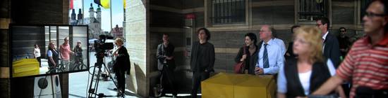 Werkleitz gratulated the Kulturstiftung des Bundes for their 10th anniversary and has thus presented the closed circuit video installation on the central square of Halle (Saale).