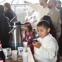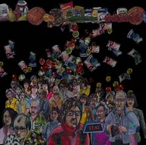 50 people participate during an exhibiton in the German Film Museum in the production process of a collective film by writing on, scratching, drawing and sampling 35mm film material.